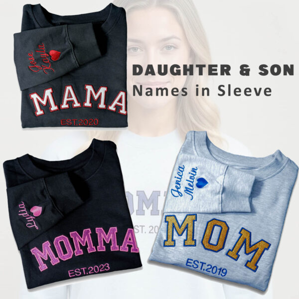 - 👩👧👦 Personalised Detail: Your children’s names elegantly scripted on the sleeve, alongside a heart symbol.